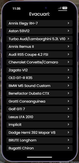 3. Dacă aveți o evacuare instalată de către <mark style="color:yellow;">**facțiunea Mecanici**</mark> nu o să aveți acces la aplicație și o să primiți un mesaj pe ecranul telefonului în momentul în care deschideți aplicația cum că "<mark style="color:yellow;">**Nu ai evacuare cu aplicație**</mark>". Acest lucru face referire la faptul că nu este un <mark style="color:yellow;">**voucher pus pe vehicul**</mark>.